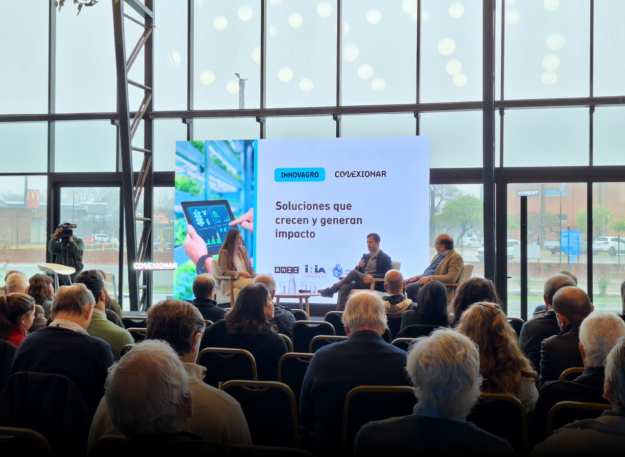 Con la participación de los presidentes de la Agencia Nacional de Investigación e Innovación (ANII), Alvaro Brunini; y del Instituto Nacional de Investigación Agropecuaria (INIA), Miguel Sierra; se realizó “Conexionar Innovagro: soluciones que crecen y generan Impacto”, un evento en el que se exhibieron proyectos financiados en el marco del Fondo Sectorial Innovagro, que ambas instituciones llevan adelante junto con el Ministerio de Ganadería, Agricultura y Pesca (MGAP).